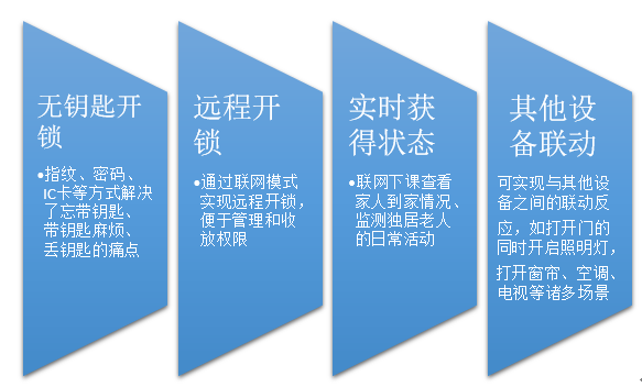 2、智能門鎖發(fā)展可以分為4個(gè)階段: